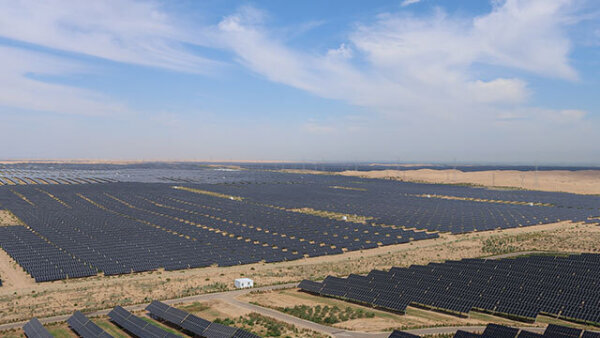 在库布其沙漠的瀚海深处,一道蓝色“长城”破壁而出——光伏板如鳞次栉比的铠甲,锁住流沙的同时,源源不断输出清洁电力。[详情]