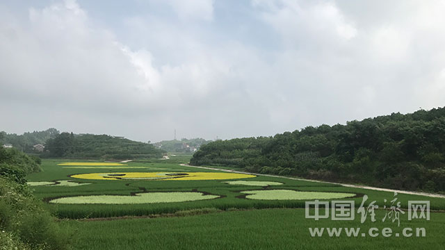 经济日报-中国经济网重庆7月15日讯 (记者 魏敏) 青山绿水间,由彩色水稻拼成的“笑脸”、“双手托举爱心”、“柑橘树”等图案和“三峡橘乡·田园综合体”、“中国梦”等字体,成为重庆忠县新立镇一道靓丽的乡村田园风景线。