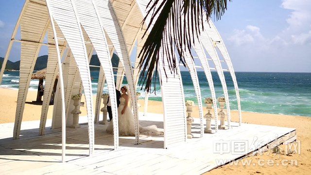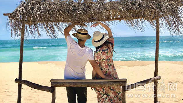 图为一对情侣在呆呆岛网红打卡点拍摄婚纱照 经济日报-中国经济网 杨奇奇\摄