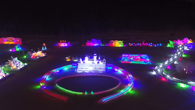 今年冰雪园的主题是:冰雪新时代,筑梦阿尔山。整个冰雪园依山靠城,城景结合。占地面积3.6万平方米。用冰量4千立方米,用雪量3.5万立方米。大小冰雪雕塑60多座。形成了山城对应中轴线分列的左右格局。共分6处冰雪区间。分别是荣耀盛典区,草原记忆区、欧陆风情区、童乐天地区、卡通动漫区、文心雕龙区。其中文心雕龙一区又细分为国际比赛区和精雕区。